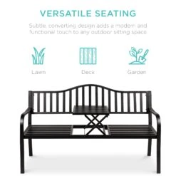 Best Choice Products Steel Bench For Outdoor Patio And Garden W/ Pullout Middle Table