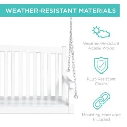 Best Choice Products Wooden Curved Back Hanging Porch Swing Bench W/ Mounting Chains – 48in