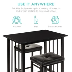 Best Choice Products 3-Piece Indoor Metal Wood Square Dining Table, Furniture Set W/ 2 Chairs