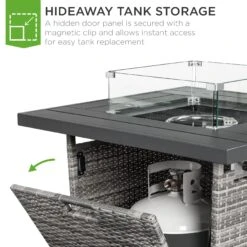 Best Choice Products 32in Fire Pit Table 50,000 BTU Wicker Propane W/ Wind Guard, Cover