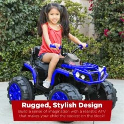 RUGGED, STYLISH DESIGN: This ride-on ATV is built tough and equipped with realistic features to build your child’s sense of imagination and adventure
