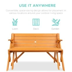 Best Choice Products 2-in-1 Outdoor Interchangeable Wooden Picnic Table/Garden Bench