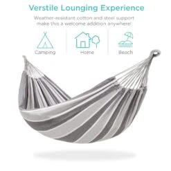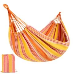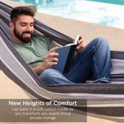 BUILT TO LAST: Weather-resistant hammock is made from a tightly woven cotton blend that easily folds into a compact carrying bag so you can take your comfort on the go!