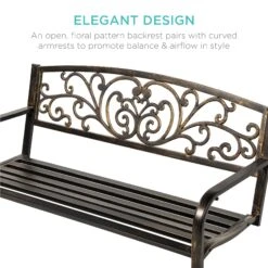 Best Choice Products 2-Person Metal Outdoor Porch Swing W/ Floral Accent, 485lb Weight Capacity