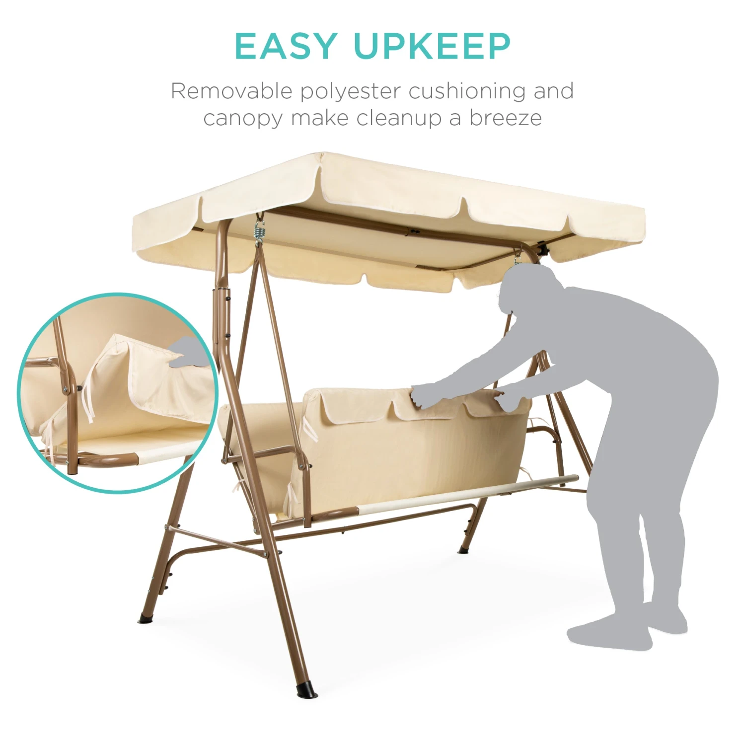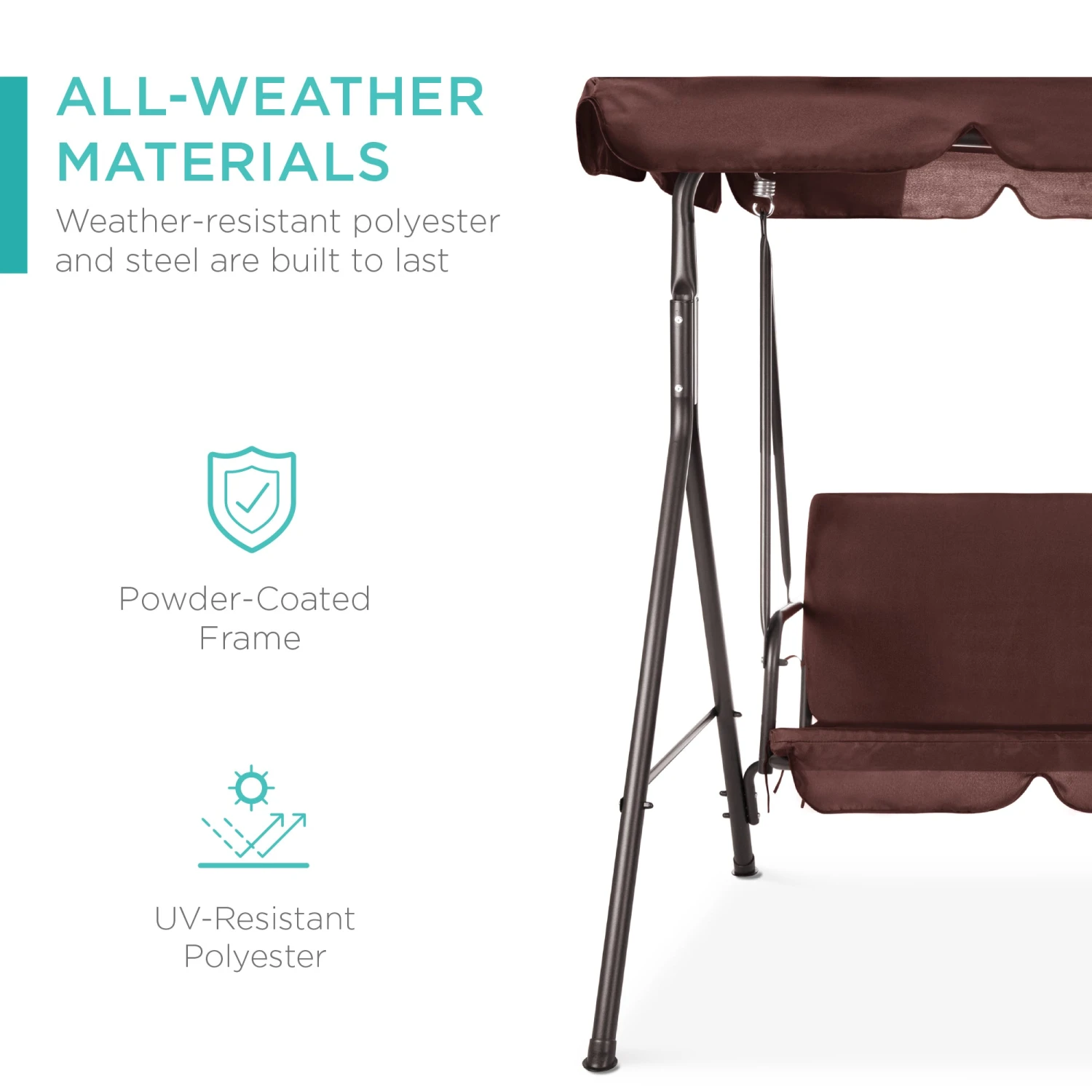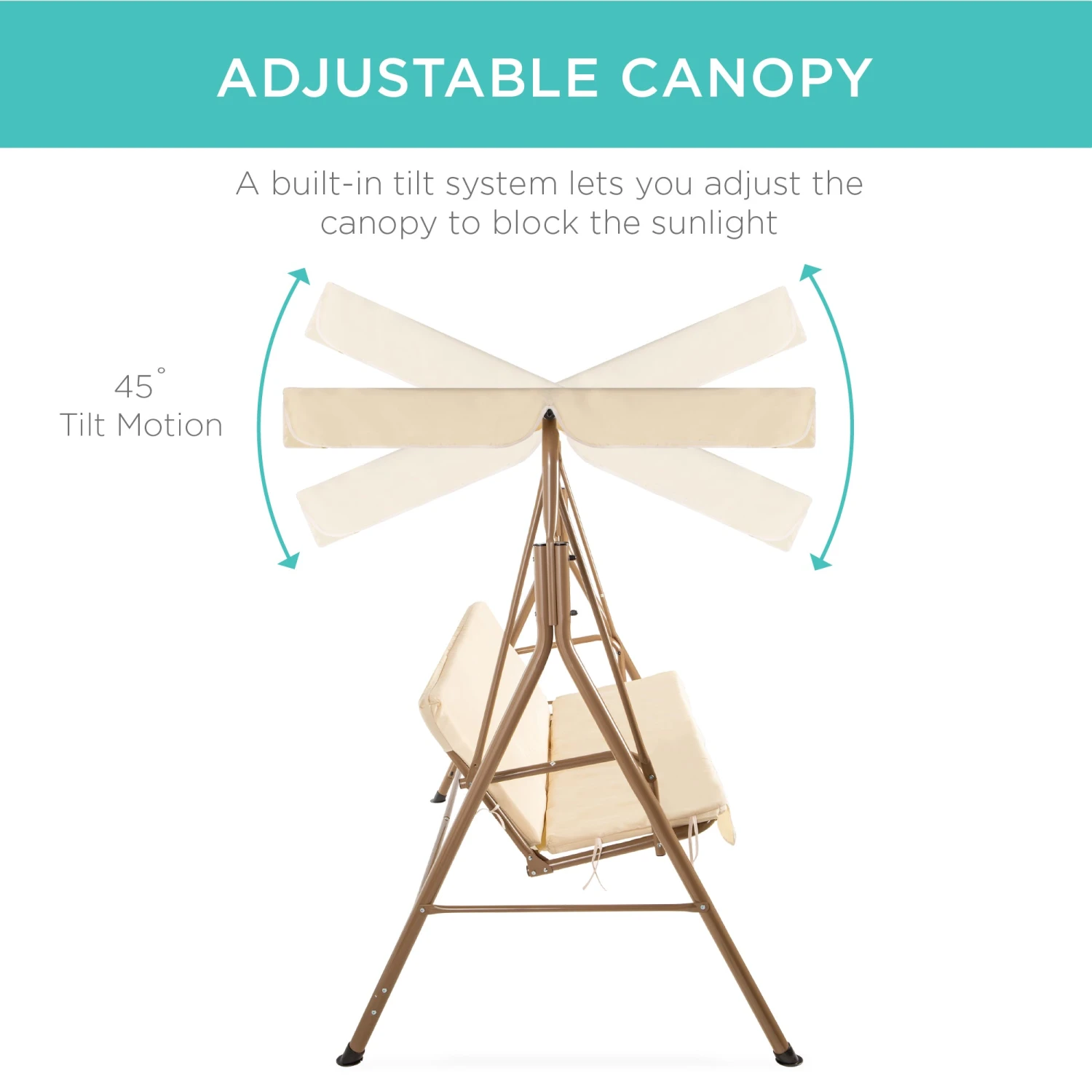 Best Choice Products 2-Person Outdoor Canopy Swing Glider Furniture W/ Cushions, Steel Frame