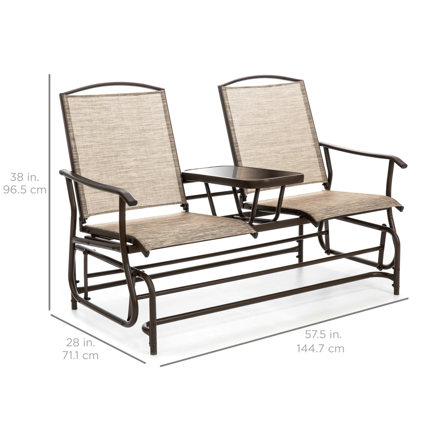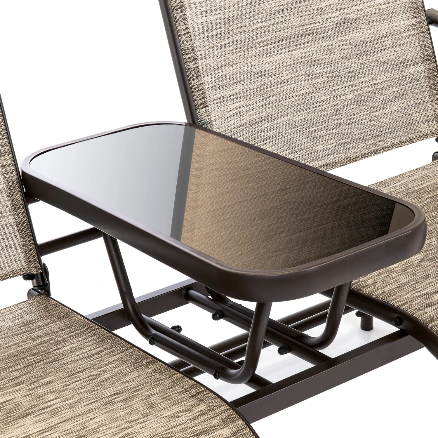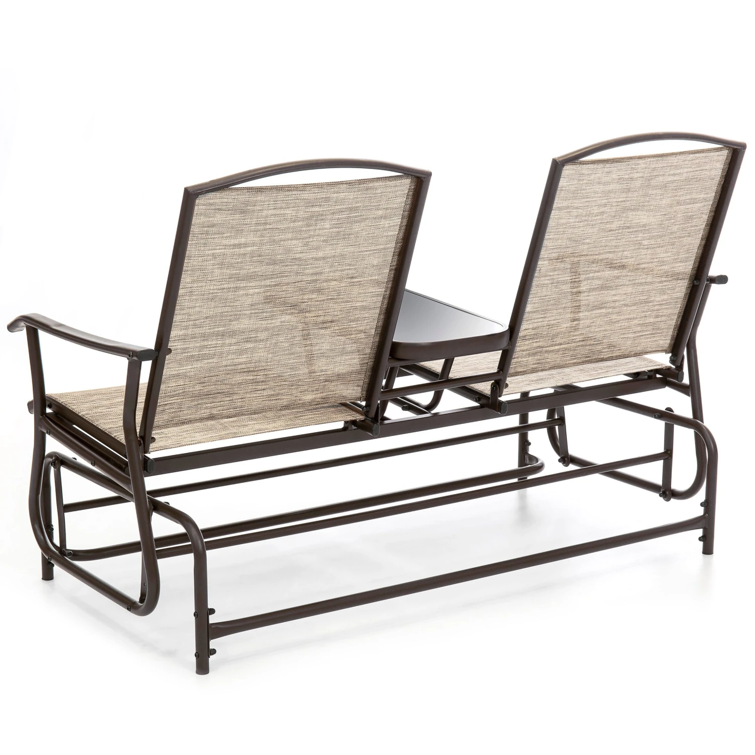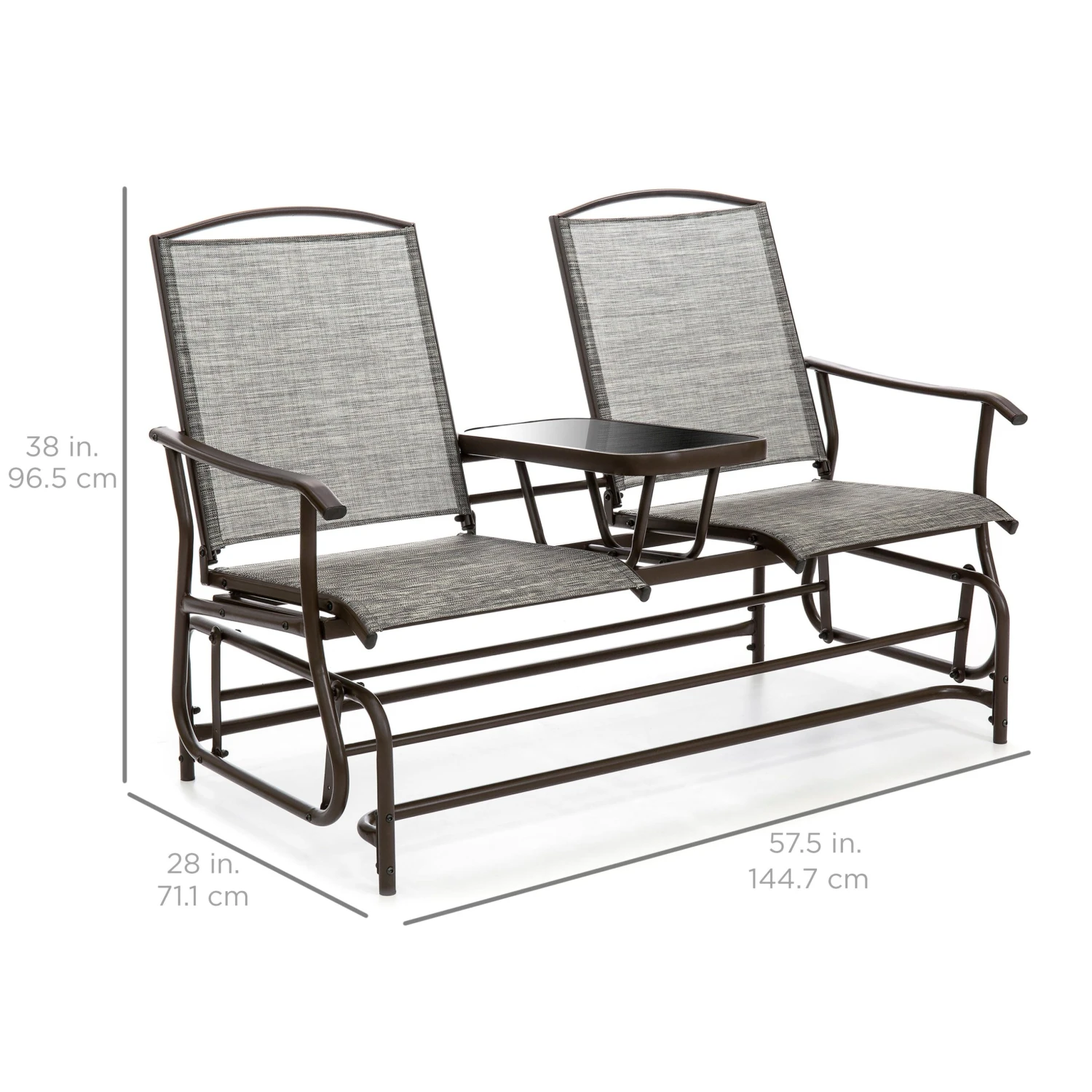 Best Choice Products 2-Person Outdoor Mesh Double Glider W/ Tempered Glass Attached Table