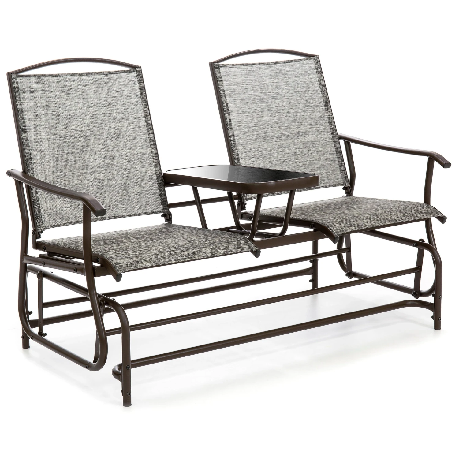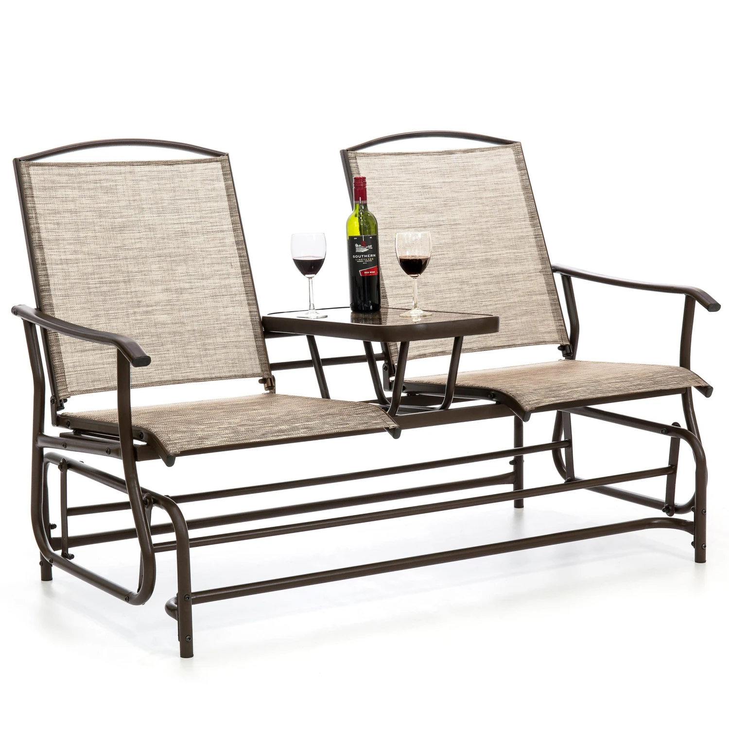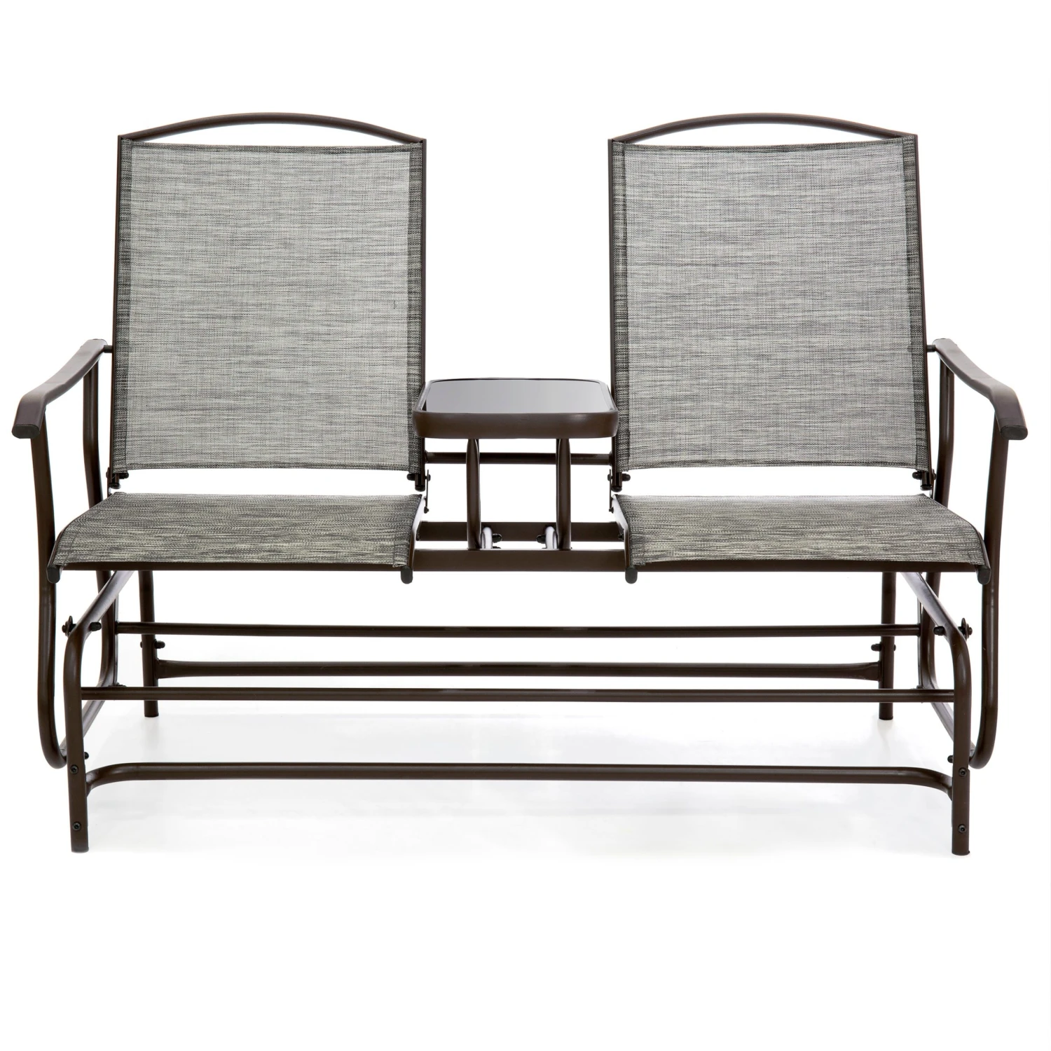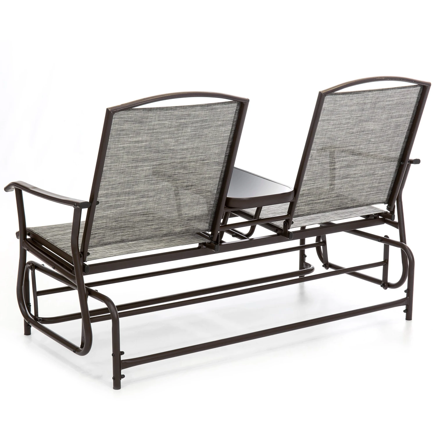 Best Choice Products 2-Person Outdoor Mesh Double Glider W/ Tempered Glass Attached Table