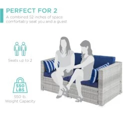 SKU: YMVZD 7092148863162 Categories: Outdoor Furniture, Outdoor Living Tags: Best Choice Products 2-Person Outdoor Patio Loveseat Wicker Sofa Couch Furniture Set w/ 2 Accent Pillows - Gray/Navy, BestChoiceProducts2-PersonOutdoorPatioLoveseatWickerSofaCouchFurnitureSetw/2AccentPillows-Gray/Navy, Outdoor_Furniture, ShopifyClearance