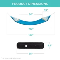 - VERSATILE LOUNGING ACCESSORY: A set of steel hanging chains help you turn two fixed points into a private lounge (Stand not included; SKY1898 compatible); OVERALL DIMENSIONS: 108″(L) x 53″(W); WEIGHT CAPACITY: 300 lbs.