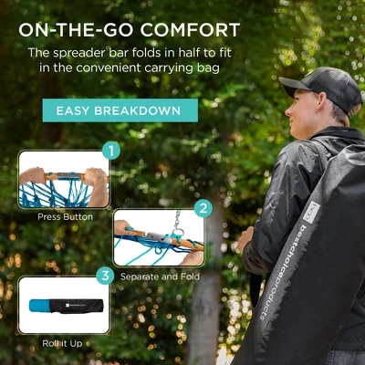 - ON-THE-GO COMFORT: The two spreader bars split in half for convenient storage while an included carrying bag lets you take this hammock anywhere!