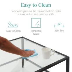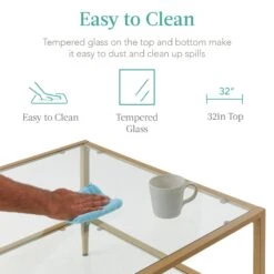 Best Choice Products 2-Tier Large Square Coffee Table Living Room Accent W/ Glass Top – 32″