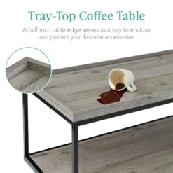 TRAY-TOP COFFEE TABLE: This table features a 0.5in tall table edge to serve as extra protection in case of spills and protect your favorite decorations from rolling away