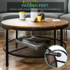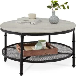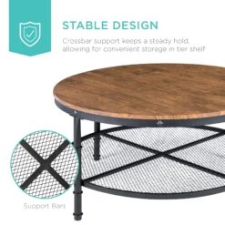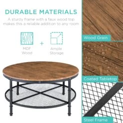 Be the first to review “Best Choice Products 2-Tier Round Industrial Wood & Steel Coffee Table, Storage Shelves – 35.5in” Cancel reply
