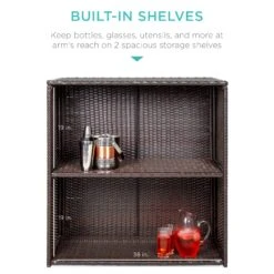 BUILT-IN SHELVES: Store drinks, bottles, mixers, ice, tools, accessories, and more on spacious shelves that stretch approximately 40 inches long and 20 inches high