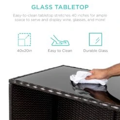 GLASS TABLETOP: The tall bar table has a glass top to provide an elegant touch and provide a smooth surface to place food and drinks