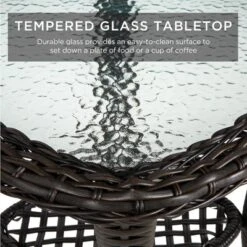 - SIDE TABLE: Includes a matching tempered-glass side table to complement your patio nook, and to provide an easy-to-clean surface for drinks and outdoor meals