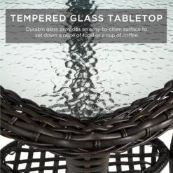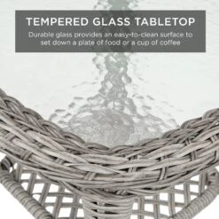 SIDE TABLE: Includes a matching tempered-glass side table to complement your patio nook, and to provide an easy-to-clean surface for drinks and outdoor meals