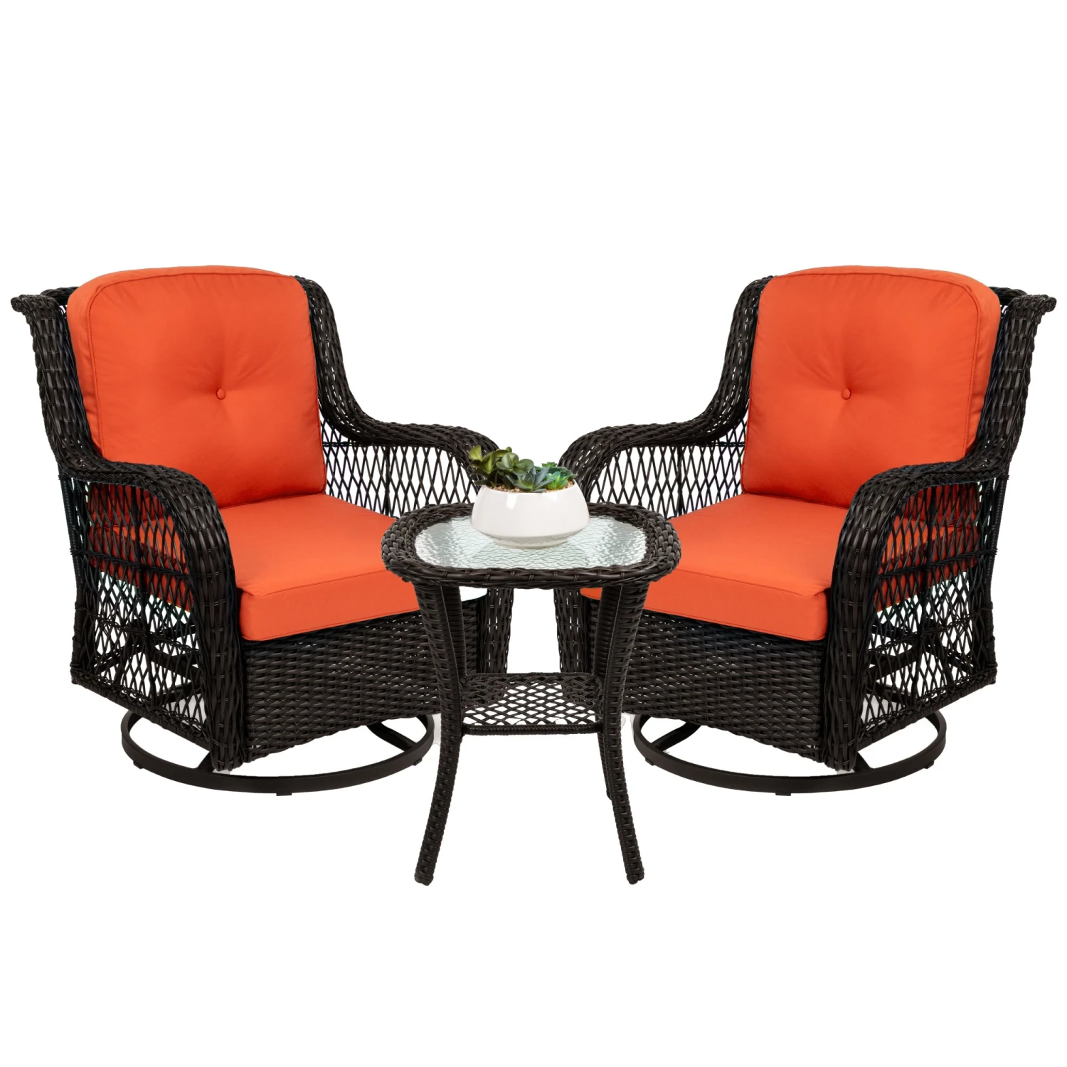 Best Choice Products 3-Piece Patio Wicker Bistro Furniture Set W/ 2 Swivel Rocking Chairs, Table