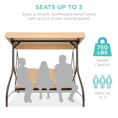 Glide into a comfortable seat with your favorite two people. This adjustable, easy to convert swing glider features an all-weather design with a steel frame built to last. A built-in tilt system lets you freely adjust the canopy to block sunlight with an up to 45-degree tilt motion. A heavy-duty steel spring lock combined with UV-resistant polyester makes this an easy, and sturdy addition to your outdoor set up. Lay back and relax or tip the seat back and enjoy a suspended day bed!