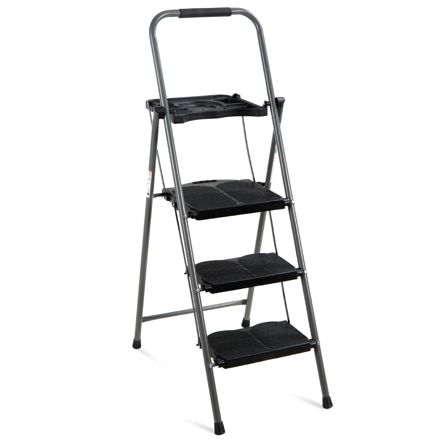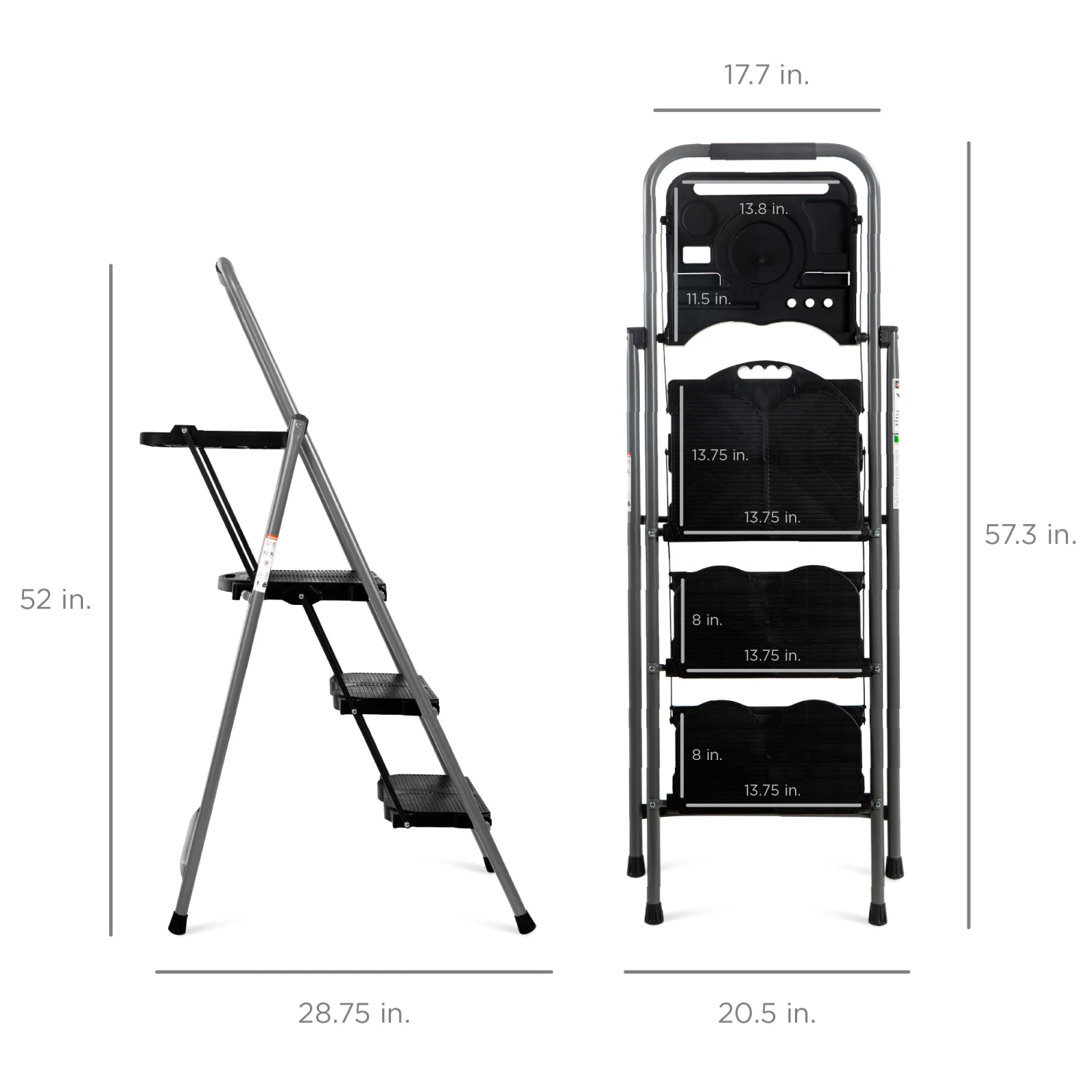 Best Choice Products 3-Step Folding Steel Ladder W/ Utility Tray, Hand Grip, 330lb Capacity