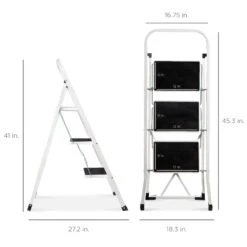 3-STEP LADDER: A 41-inch step ladder provides ample height for your household tasks while anti-slip feet help you maintain balance