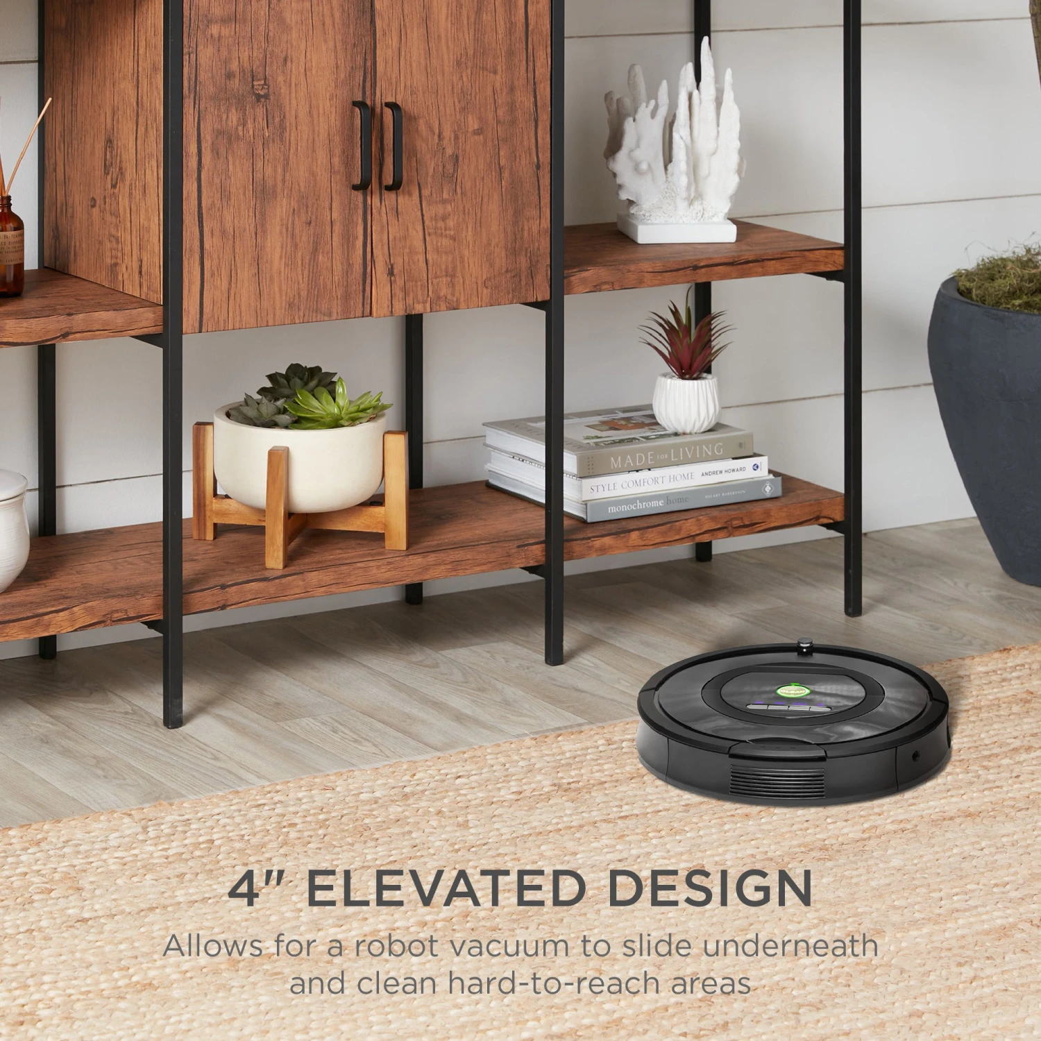 ELEVATED DESIGN: Built with a raised bottom shelf which allows robovacs to freely pass underneath, providing easy cleanup and maintenance