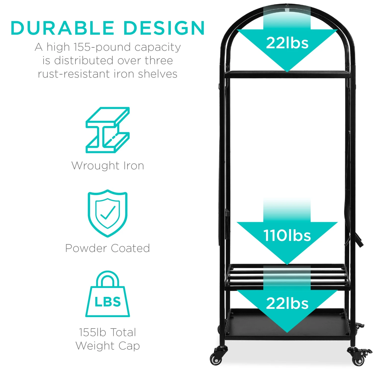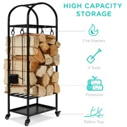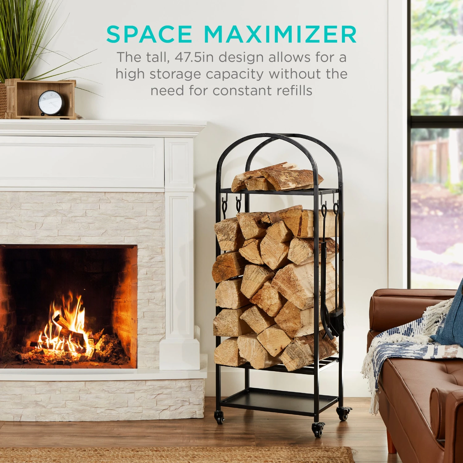 Best Choice Products 3-Tier Wrought Iron Firewood Log Rack W/ 4-Piece Tool Set, Wheels – 4ft