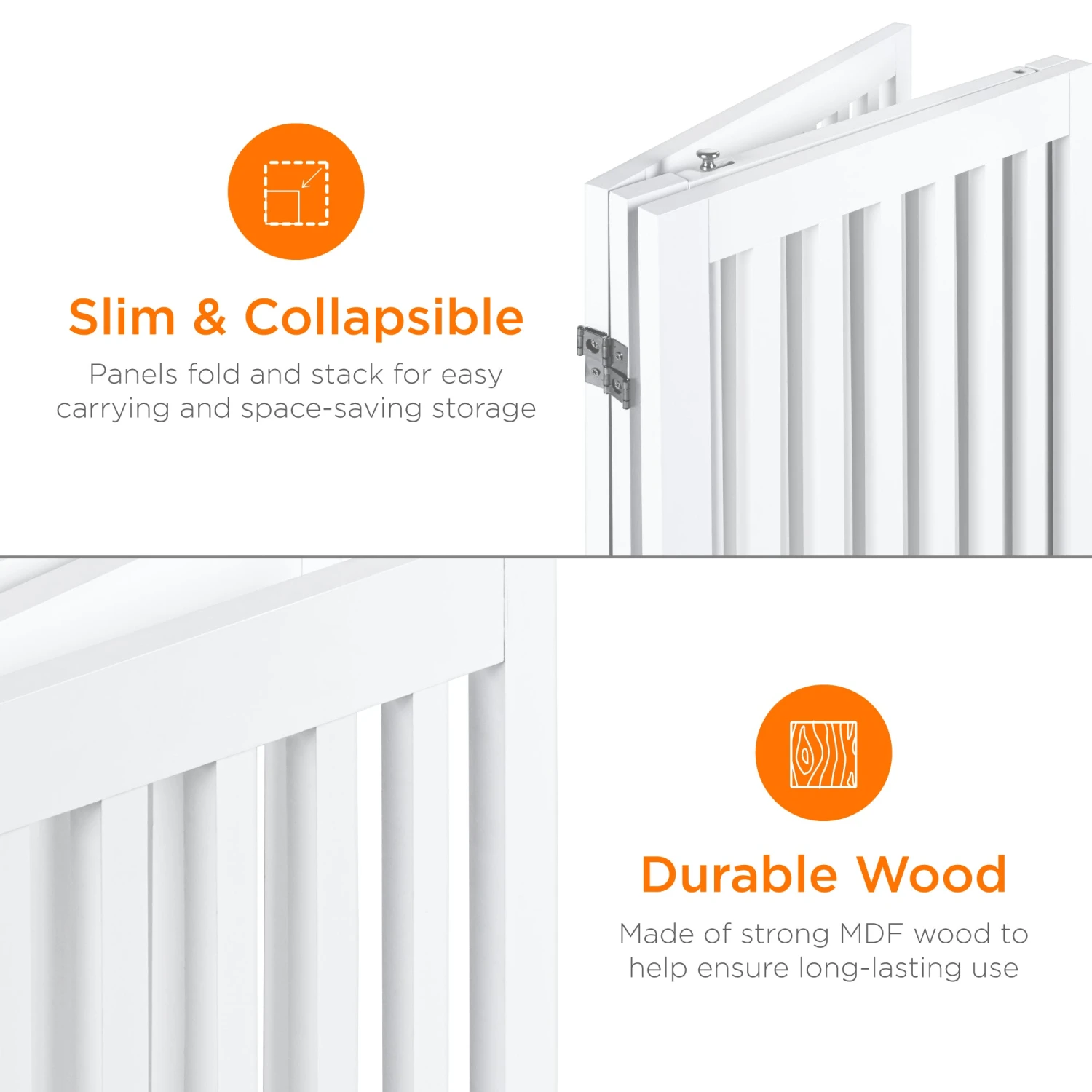 Best Choice Products 31.5in 3-Panel Freestanding Wooden Pet Gate W/ Door, Support Feet