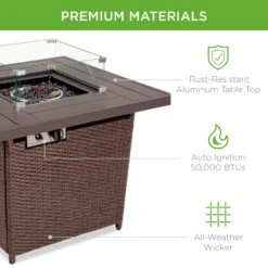 Best Choice Products 32in Fire Pit Table 50,000 BTU Wicker Propane W/ Wind Guard, Cover