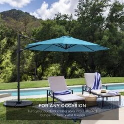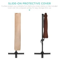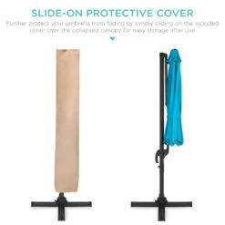 DURABLE, HIGH-QUALITY MATERIALS: Crafted with a 2-inch-thick, powder-coated aluminum pole to prevent rust and scratching, plus a water- and fade-resistant polyester fabric shade for years of vibrance. Thick, fabric cover is included to further protect the umbrella from the elements