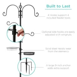 Best Choice Products 4-Hook Bird Feeding Station, Steel Feeder Stand W/ 2 Bird Feeders – 91in