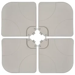 Strike that balance of style and function with a versatile essential for lounging beneath an offset umbrella! This 4-piece offset umbrella base features a classic design: four interconnecting plates lock in place with metal pins to keep your umbrella upright and secure with four pins. A refillable reservoir with easy-to-fill spouts make it a breeze to add sand or water to weigh it down. Each plate can hold sand (38.9 lbs. per plate or 155.6 lbs. total fill capacity) or water (13.2L per plate or 52.8L total fill capacity). Done for the season? Empty the 19.9inx19.9in plates, stack, and store them until the next sunny day! An umbrella is a lot less valuable without the perfect stand to keep it standing tall.