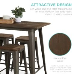 ATTRACTIVE DESIGN: Our product experts developed a rustic, industrial look that includes wood grain seat and table tops to complement your dining area with a stylish appeal expressive of the BCP brand. NOTE: Due to the inherent beauty of natural elm wood, slight variations in grain and color are to be expected.