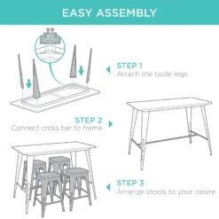 EASY ASSEMBLY: 3 simple steps can have this set built in as little as 30 minutes; attach the table legs before connecting the leg support to the frame and finally adding the stool in your desired arrangement (stools arrive already built)