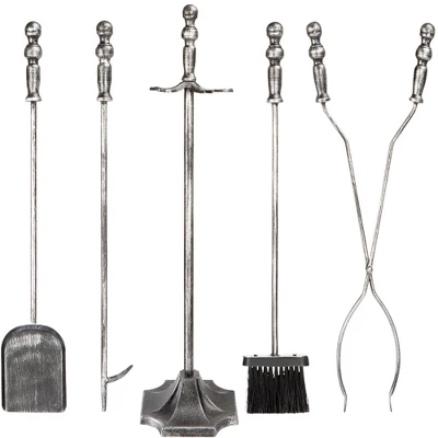 Best Choice Products 5-Piece Fireplace And Firepit Iron Tool Set W/ Tongs, Poker, Broom, Shovel, Stand