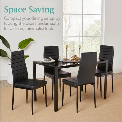 Best Choice Products 5-Piece Kitchen Dining Table Set W/ Glass Tabletop, 4 Faux Leather Chairs
