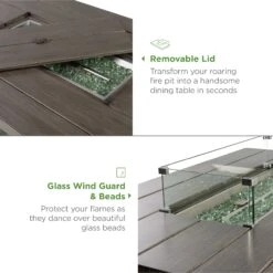 GLASS BEADS AND WIND GUARD: Ignite a warm, inviting flame over the sparkling glass beads while a glass wind guard adds a touch of elegance and keeps the fire roaring even against the wind