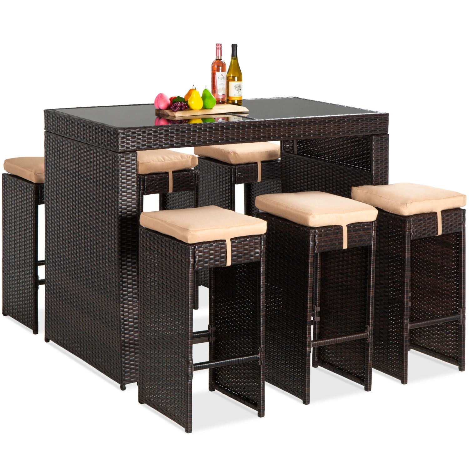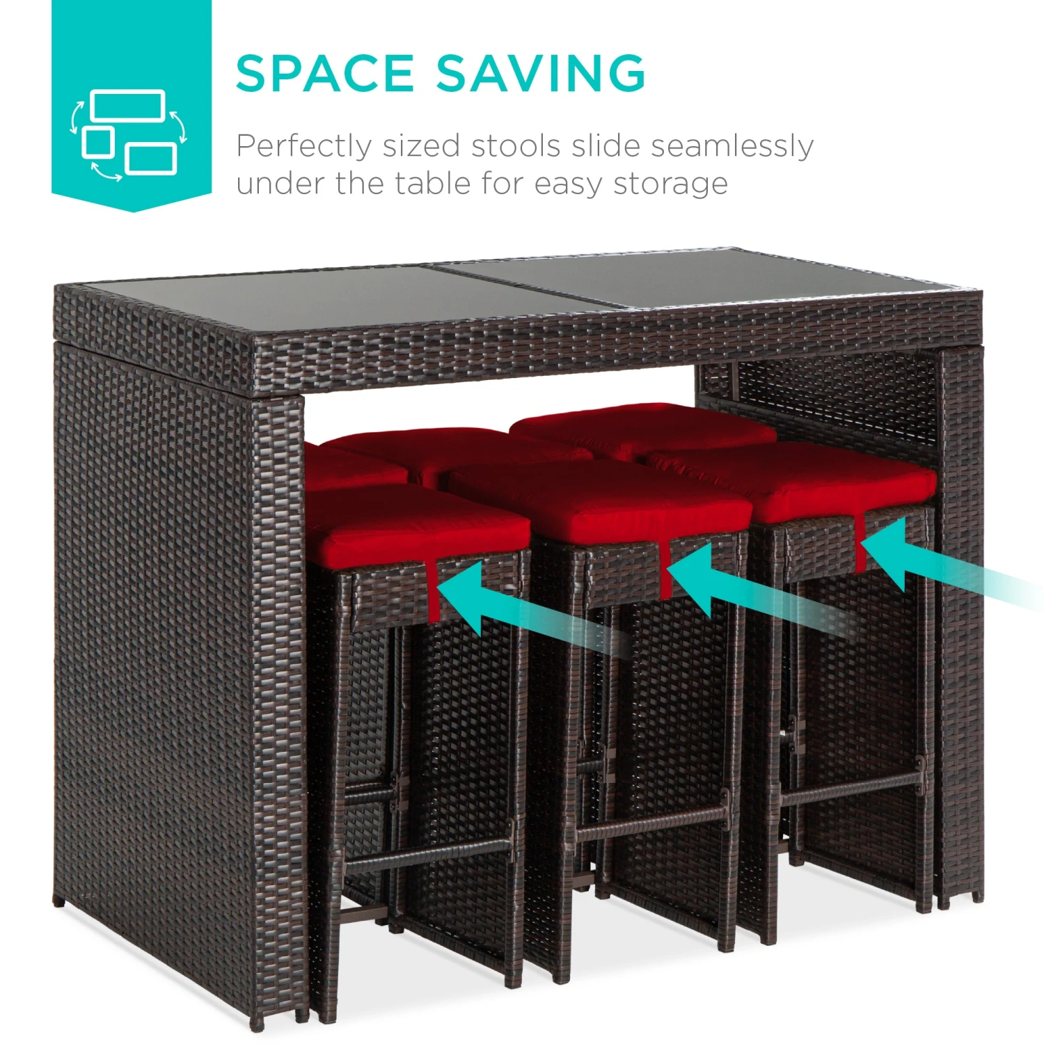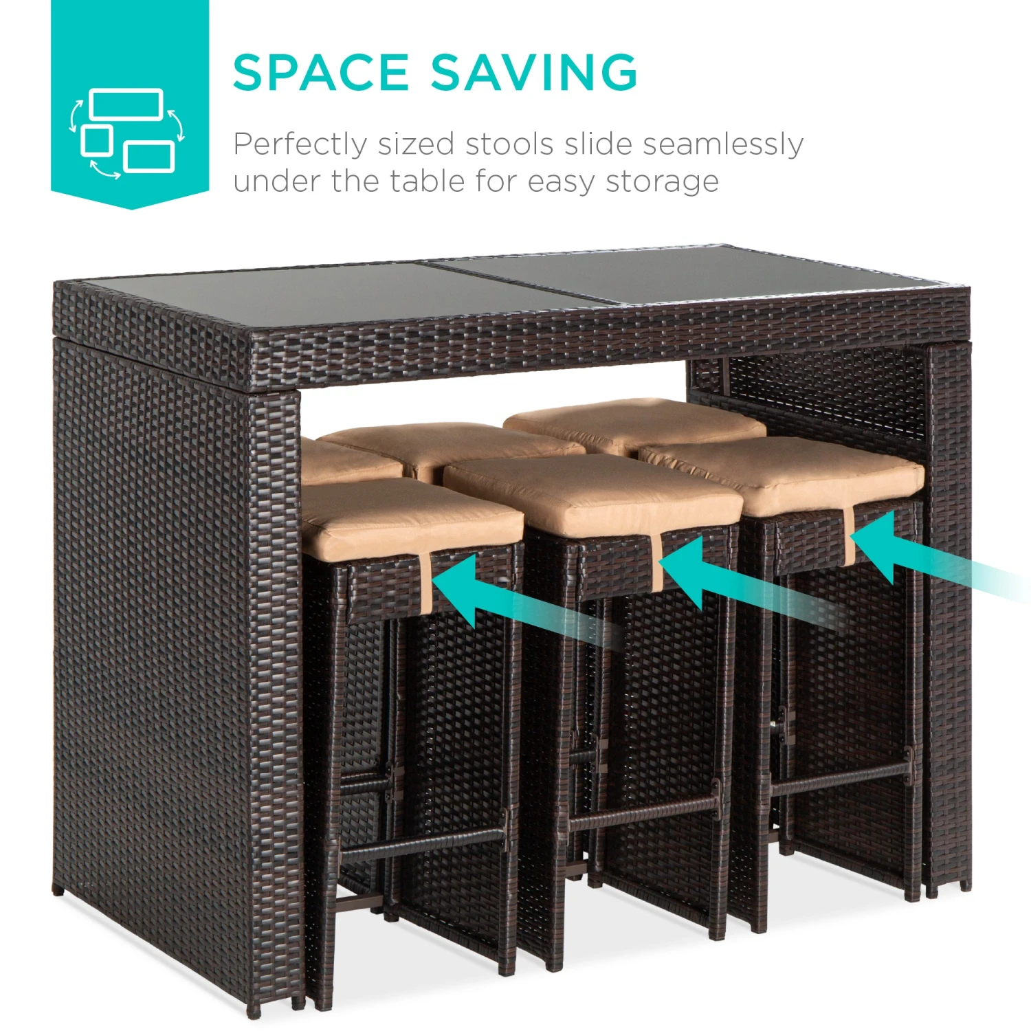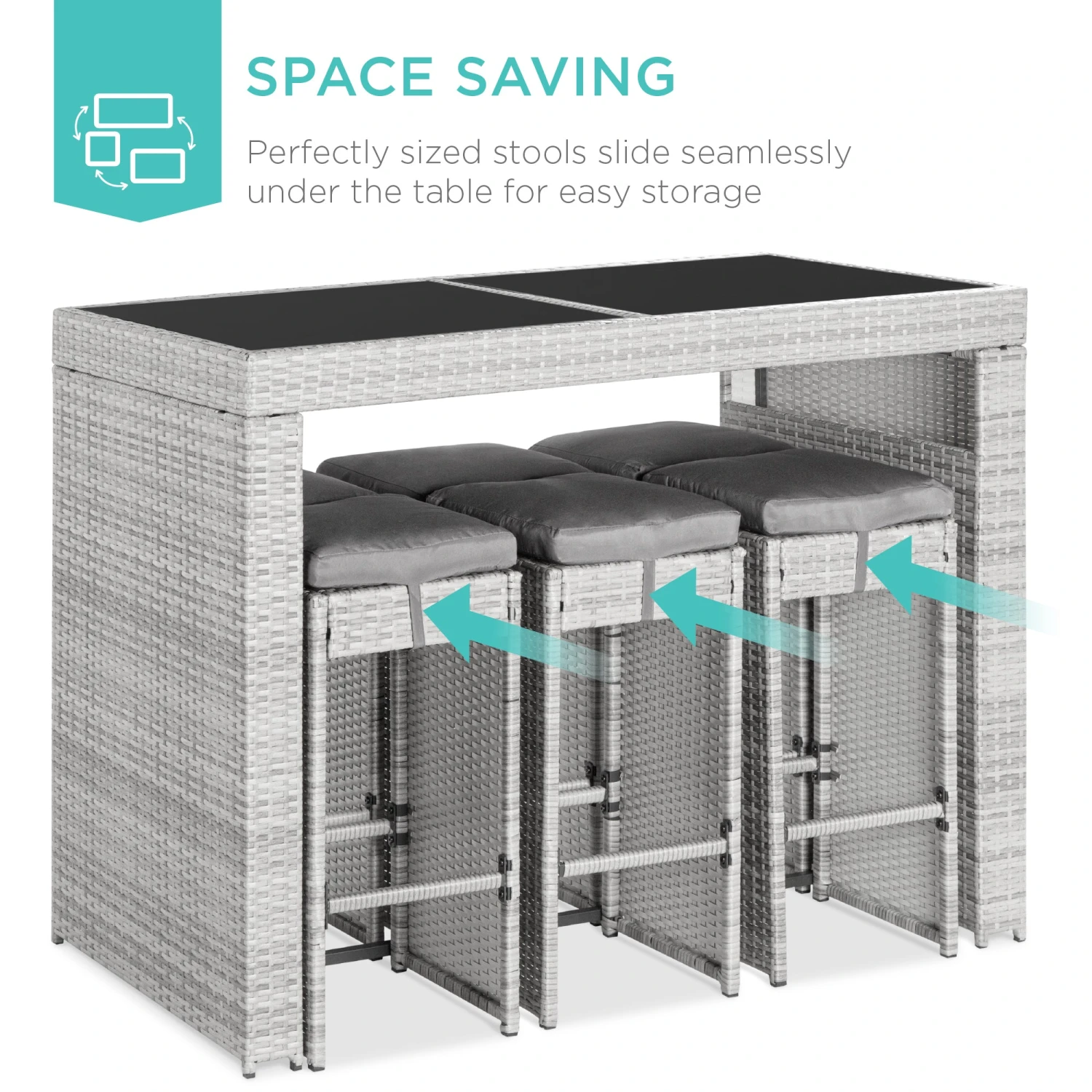 Best Choice Products 7-Piece Wicker Bar Patio Dining Set W/ Glass Table Top, 6 Stools