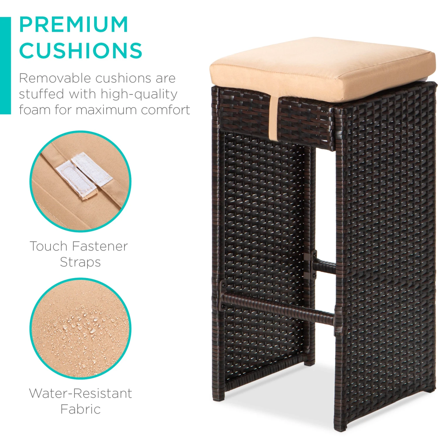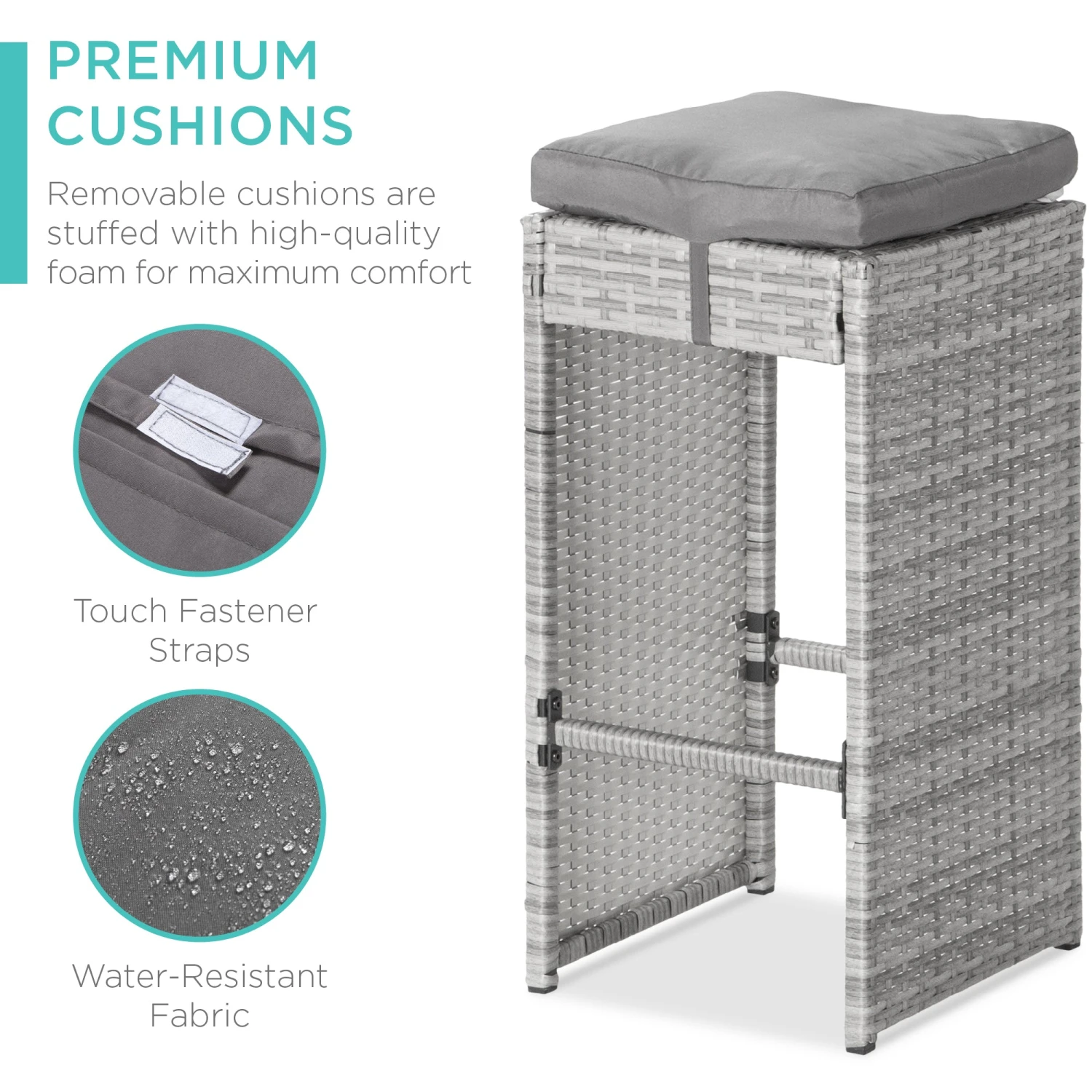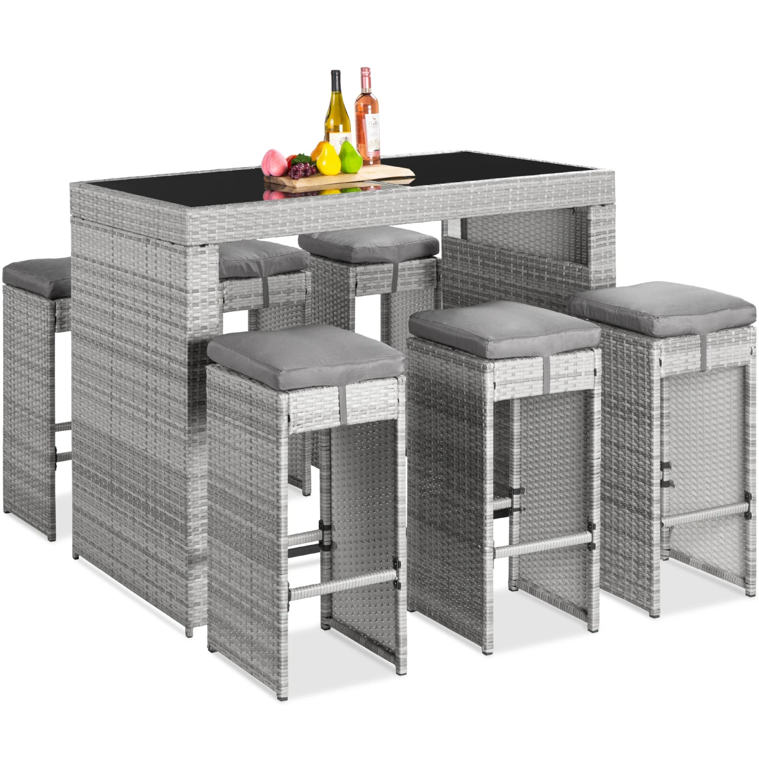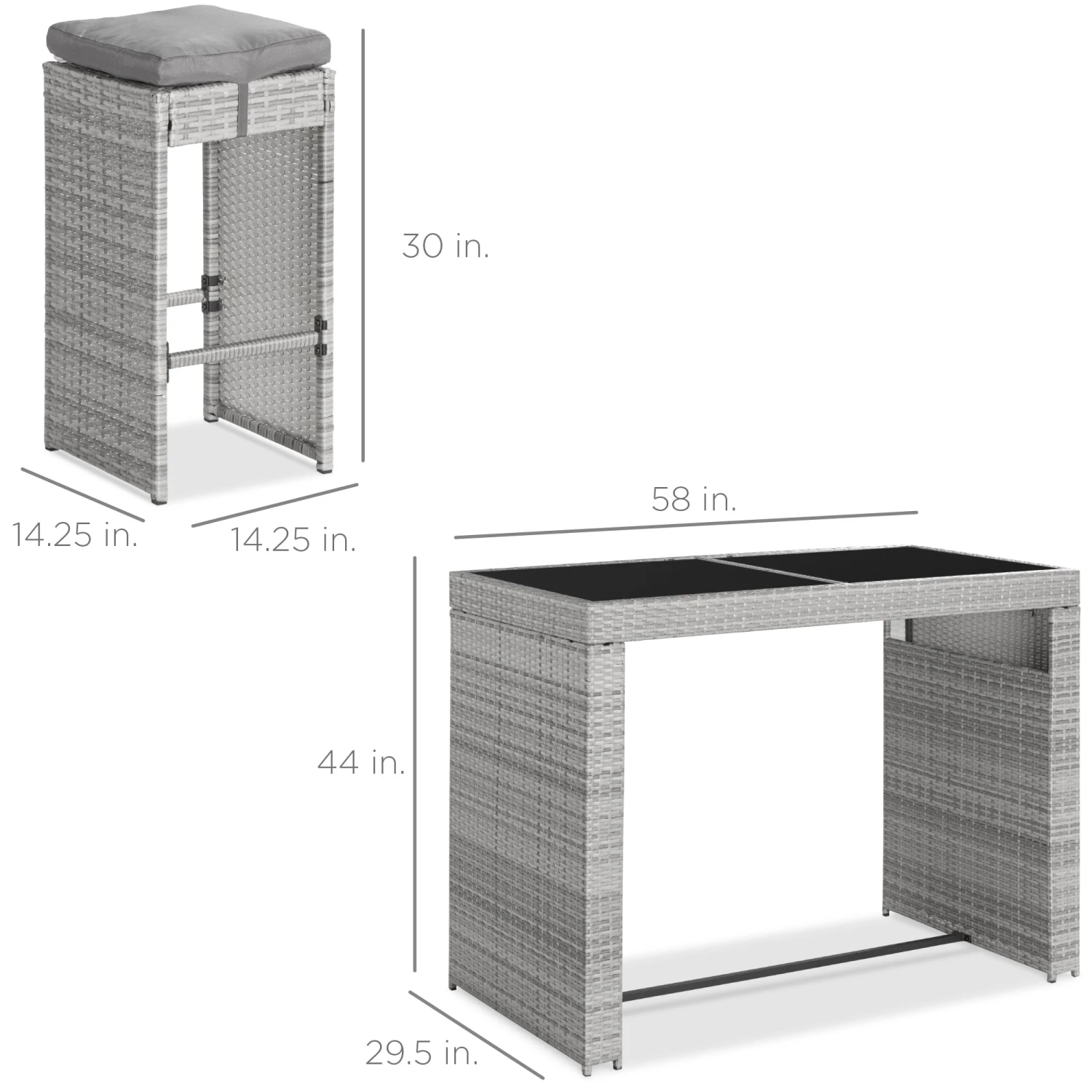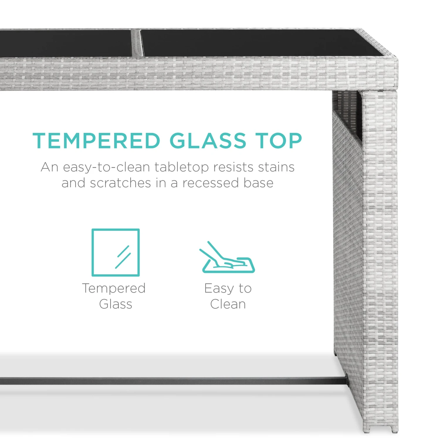 Best Choice Products 7-Piece Wicker Bar Patio Dining Set W/ Glass Table Top, 6 Stools