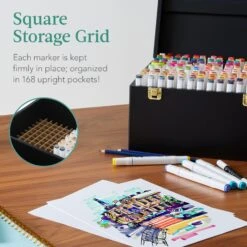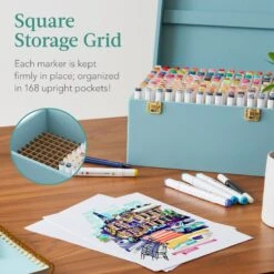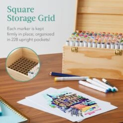 SQUARE STORAGE GRID: The carrying case comes with a wooden storage grid to help you stay organized and keep the marker pens upright for easy access