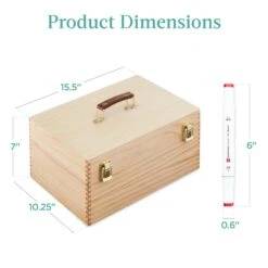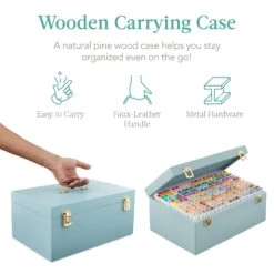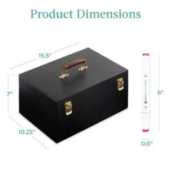 WOODEN CARRYING CASE: A pine wood case with gold-colored metal fittings provide a sturdy, aesthetically pleasing home for your markers, while the faux-leather handle lets you take them on the go