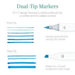 DUAL-TIP MARKERS: Craft the ideal image with two markers in one; use the brush tip for thin, flexible lines, or the chisel tip for broad, consistent strokes with crisp angles