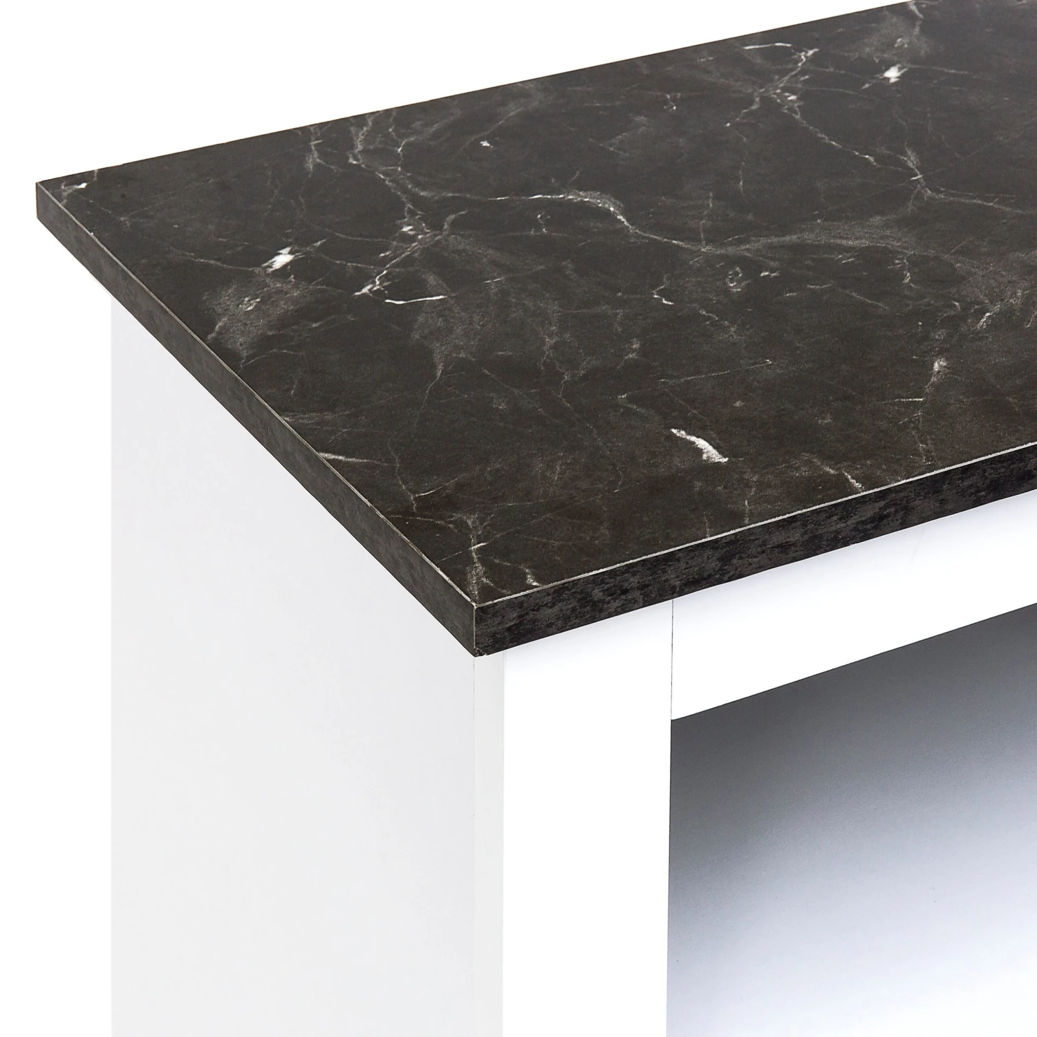Cabinet is crafted with a wood finish and a faux granite top for simple, classic elegance