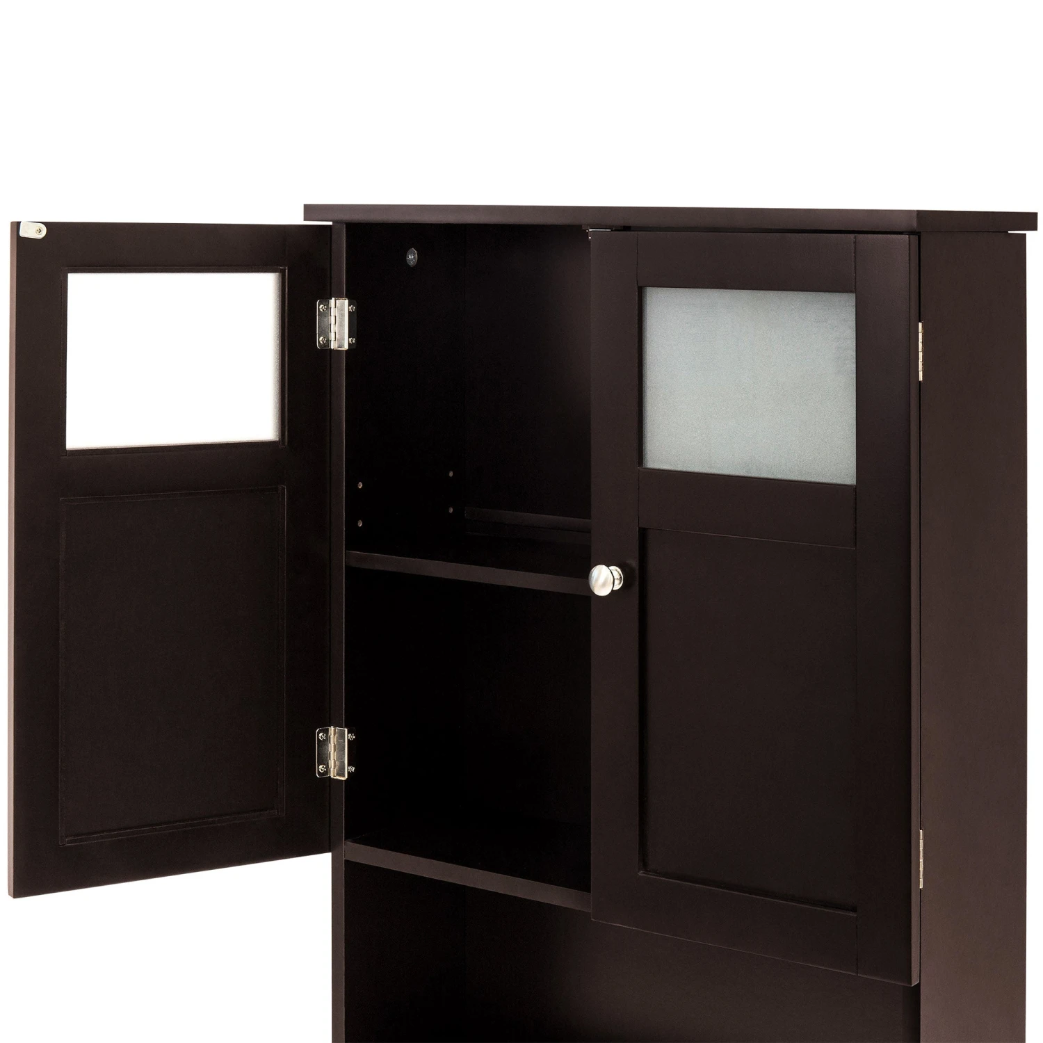 Best Choice Products Bathroom Storage Floor Cabinet W/ 3 Shelves, Tempered Glass Double Doors