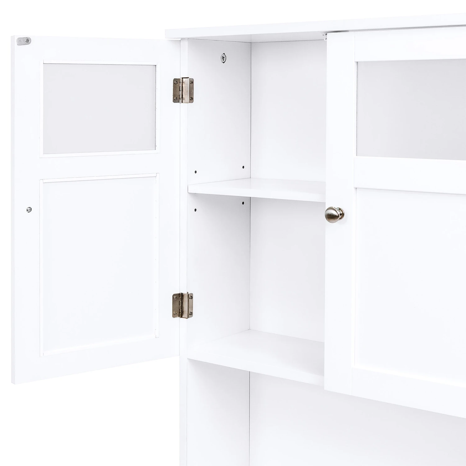 PRACTICAL DESIGN: Bathroom space-saver linen cabinet conveniently fits over your toilet and is designed with plenty of shelving for organization and storage