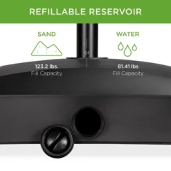 - REFILLABLE RESERVOIR & TIGHTENING KNOBS: 2-fold stability system uses a pair of tightening knobs to ensure a secure fit while the fillable base holds up to 123.2 pounds of sand or 37 liters of water.