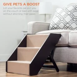 FOLDABLE STEPS: Built to fold in a compact size for traveling companions or for storage when you want to limit the amount of time your pet spends on the bed or couches