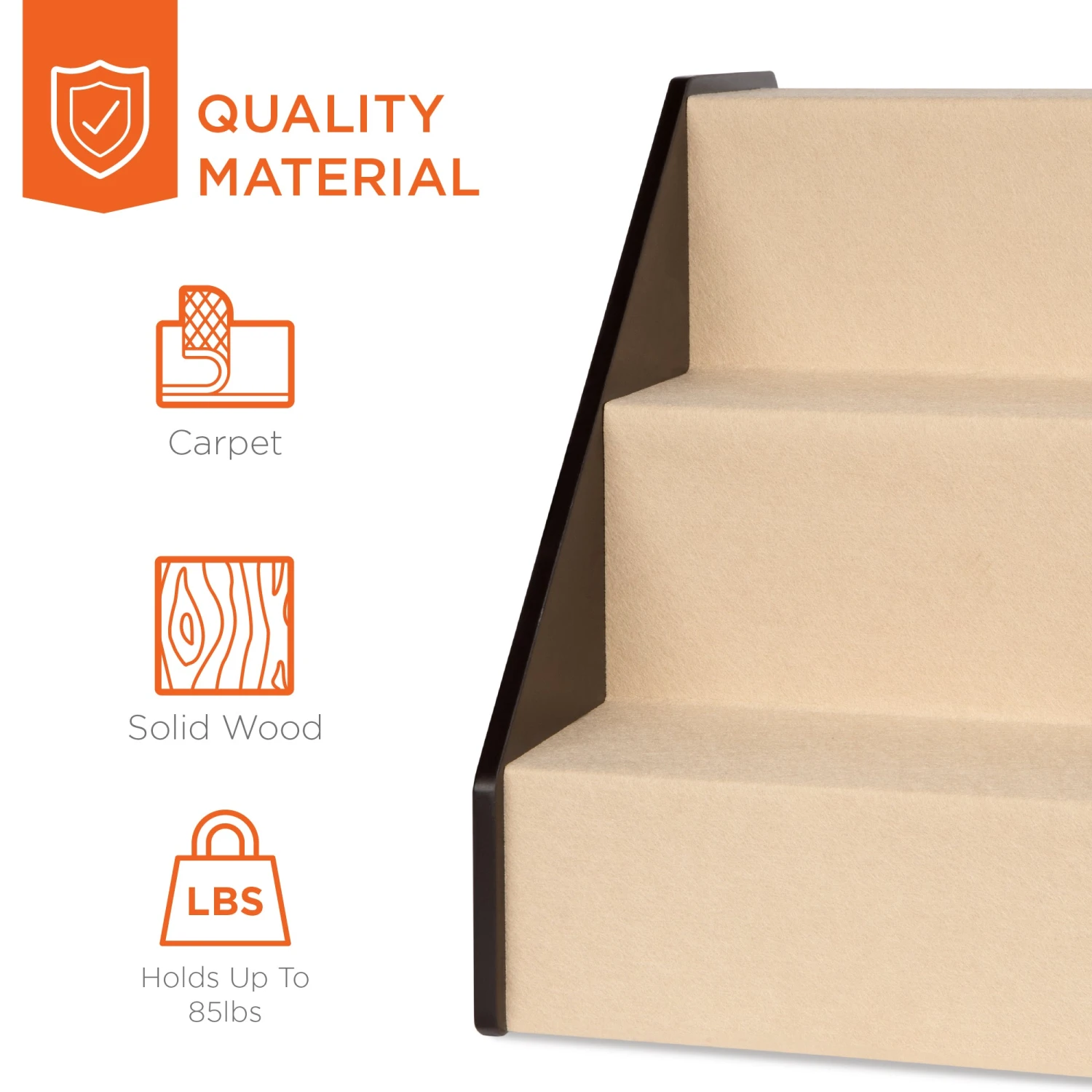 Best Choice Products Foldable Adjustable, Non-Slip Wide Wooden Carpeted Pet Step Stairs