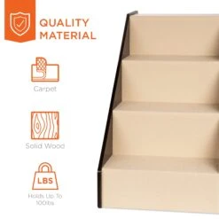 QUALITY DESIGN: Your lovable companion deserves the best, made of MDF and solid wood to support up to 85 lbs. and carpet steps to protect your pet from slipping as they climb up