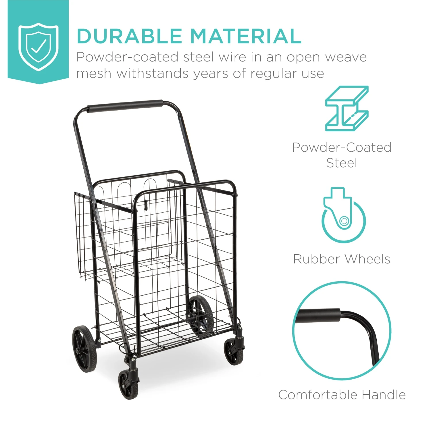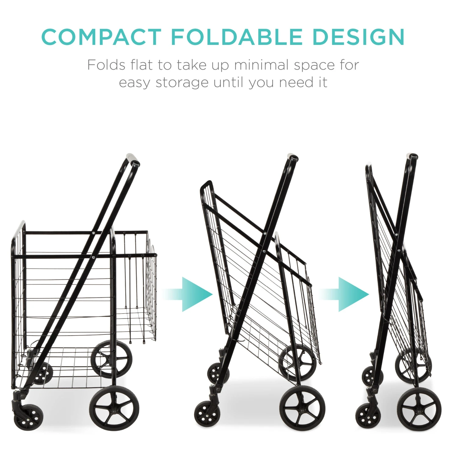 Best Choice Products Folding Steel Grocery Cart W/ Double Basket, Swivel Wheels, 220lb Cap